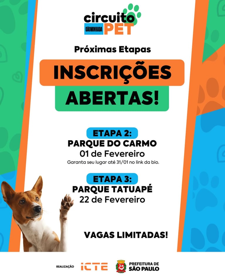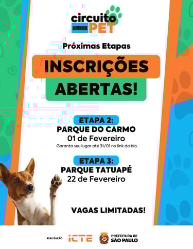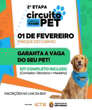 Está chegando a 2ª Etapa do Circuito Pet 2026 no Parque do Carmo!
